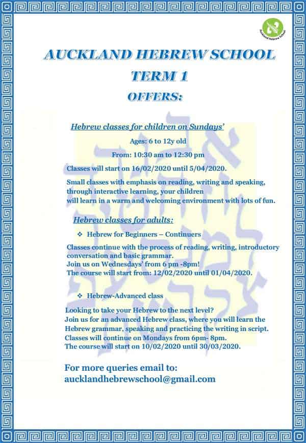 Auckland Hebrew School Term 1