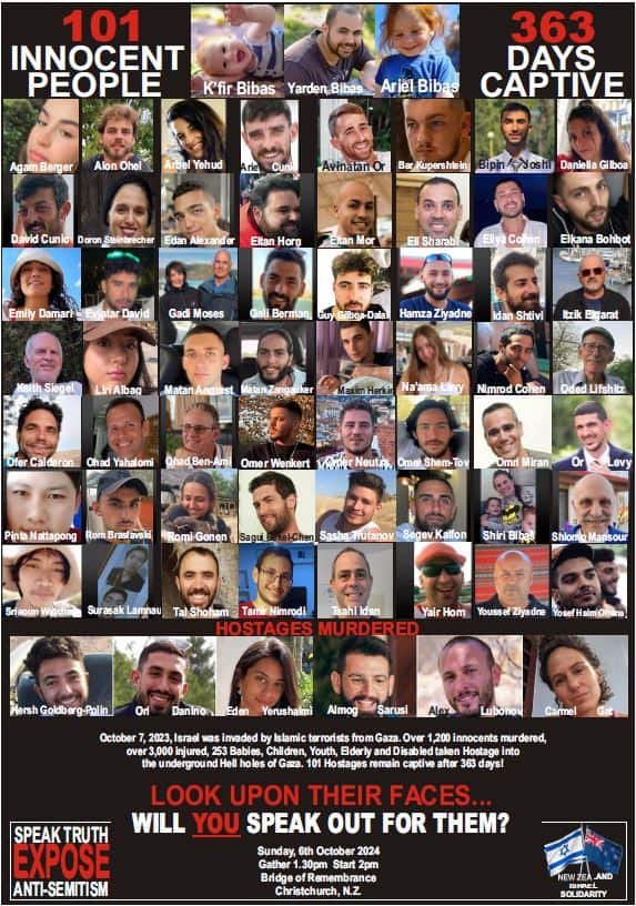 We shall speak the names of the 254 babies, children, youth, elderly and disabled innocents that were taken hostage into the underground hell holes of Gaza 364 days ago!