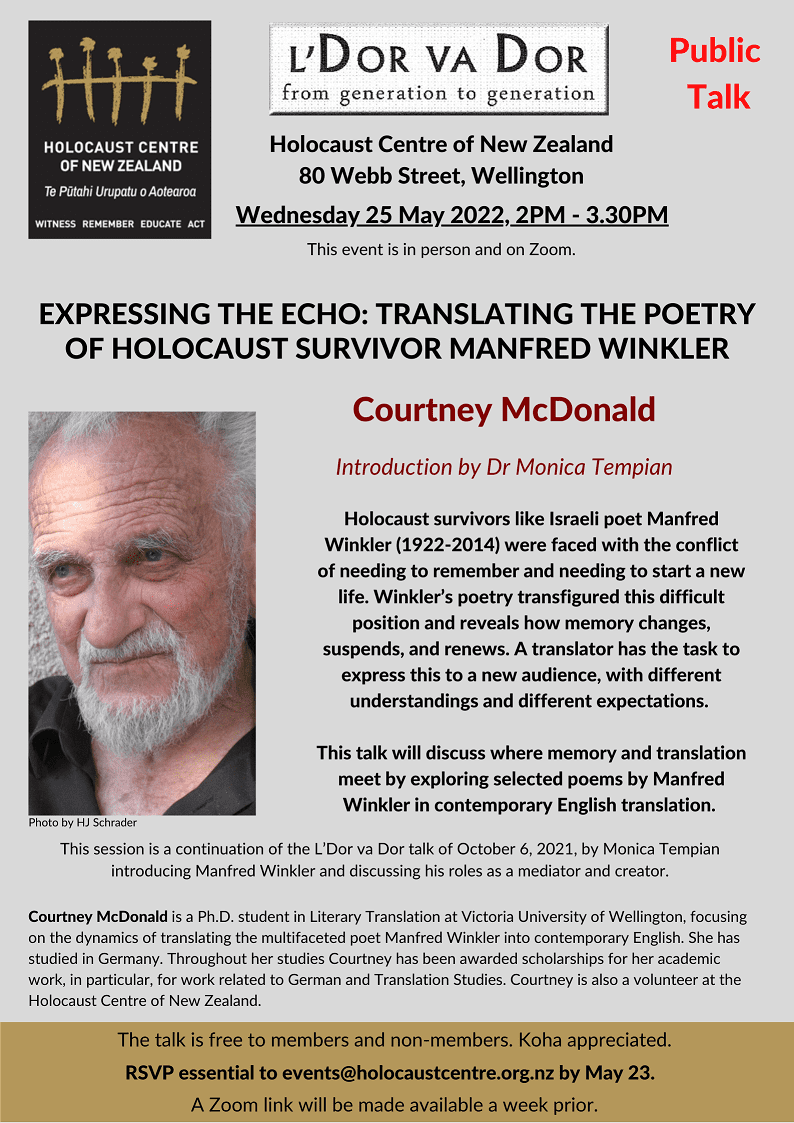 L’Dor va Dor public talk – the poetry of Manfred [updated with link] Zoom link for talk: https://us02web.zoom.us/j/83308197025?pwd=lBFkFIreDPv1l32Quf_1bg4PRf1HcS.1 Meeting ID: 833 0819 7025 Passcode: ZMquW5