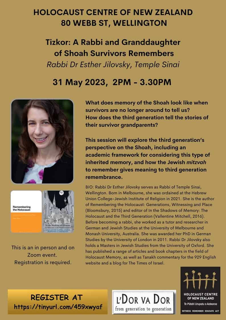 L’Dor va Dor: Rabbi Esther Jilovsky – a third generation perspective on the Shoah To register click here: https://tinyurl.com/459xwyaf