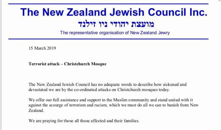 NZ Jewish Council offers full assistance & support to Muslim Community