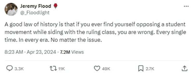 Sorry, young Jeremy. But you are dead wrong. Students have traditionally embraced plenty of putrid causes.